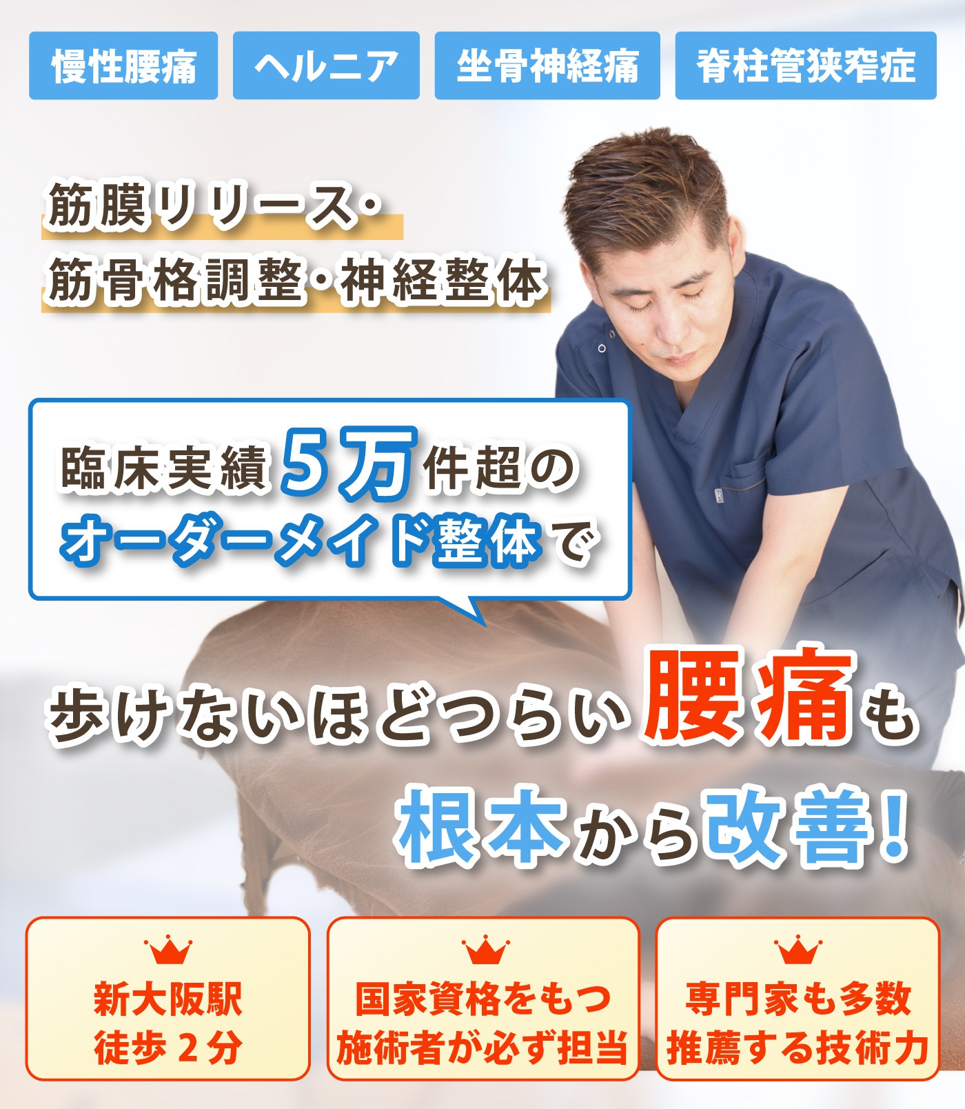 慢性的な腰痛、椎間板ヘルニア、ぎっくり腰、坐骨神経痛など腰痛の経験施術が豊富な整体院です。施術して終わりではなく、その後の自宅でできるセルフストレッチや生活習慣の指導もいたします。